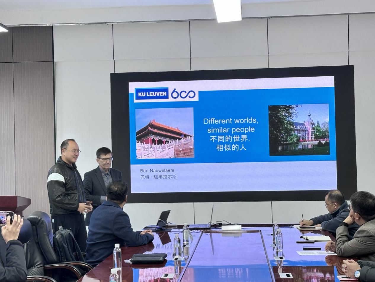 Bart Nauwelaers教授认真聆听讲解,不时就实训中心的技术架构、微波传感技术在设备状态监测中的潜在应用等问题与尹常永院长深入交流。教授对中心将前沿信息技术与新能源产业实践深度融合的模式给予高度评价,认为这种“理论-实践-产业”联动的平台,为微波技术等跨学科成果在新能源领域的落地提供了优质载体,并表达了未来开展相关合作研究的兴趣。